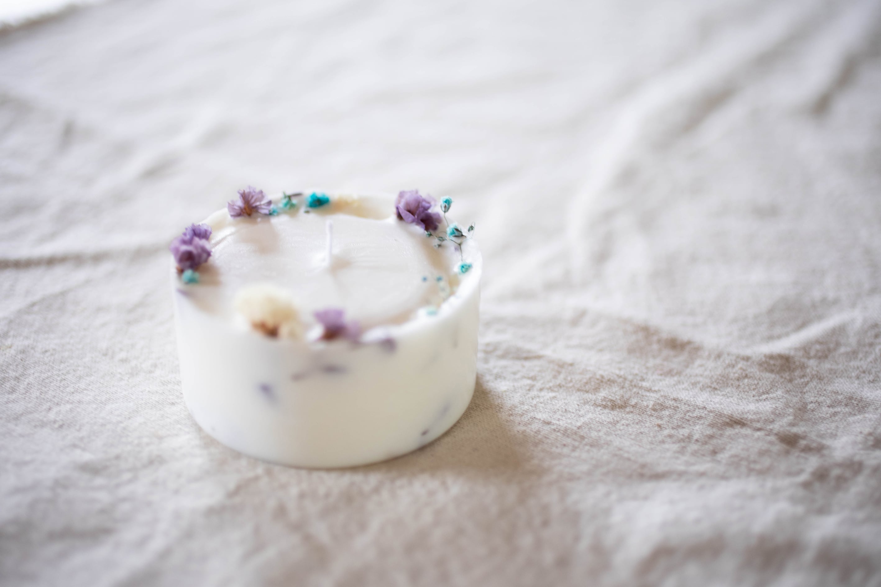 【天然素材で作られたキャンドル】 大豆を原料として精製され作られたソイワックスという、 植物由来のロウを使用して制作した 灯すとふわっと香る、アロマティーライドキャンドルです 彩りには、制作時にこぼれ落ちた小さな花々や、 捨てられるはずの紅茶の茶葉やハーブを使用しています キャンドルホルダーやランタンに使用したり 就寝前や朝の時間など短い時間に灯して 癒しやリフレッシュに活用していただくのもおすすめです ———————— 7種類の花材の中からお好みをお選びいただき 無香料と香り付きも選んでいただけます ◉無香料 〈かすみ草(ブルーグリーン)と、無香料〉 〈ラベンダーと、無香料〉 〈ローズと、無香料〉 〈茶葉と、無香料〉 〈かすみ草(オレンジ)と、無香料〉 〈カモミールと、無香料〉 〈かすみ草(ピンク)と、無香料〉 ◉香り付き 〈かすみ草(ブルーグリーン)と、シトラスの香り〉 〈ラベンダーと、ラベンダーの香り〉 〈ローズと、ローズの香り〉 〈茶葉と、ホワイトティーの香り〉 〈かすみ草(オレンジ)と、はちみつの香り〉 〈カモミールと、カモミールの香り〉 〈かすみ草(ピンク)と、ベリーの香り〉 画像のものとはイメージが異なる場合がございます。 どんなキャンドルが届くのか、楽しみにお待ちいただけましたら幸いです。 ※かすみ草は色や花材の量・細かな位置はご指定いただけません。 ※ラベンダー、ローズ、茶葉は花材の量・細かな位置はご指定いただけません。 ※燃焼部分は、大豆油から精製された天然素材のソイワックスのみを使用しており 凝固剤などの添加物不使用のため、 キャンドルの表面や内側に凹凸やヒビなどが入っている場合がありますが、 天然素材の特徴としてご理解いただけますと幸いです。 ———————— size:1つ/直径40×高さ40mm material:ソイワックス、香料、綿芯、花材 燃焼時間:約4H(気温・空調・環境により異なる) ———————— Made in Japan ・・・・・・・・・・・・・・・・・・・・・・・・・・ 『ひいらぎキャンドルの〈natural〉シリーズ』 使用するロウは大豆、ヤシの木、ココナッツなど植物由来のワックス。 ススが出にくく身体にも環境にも優しい 安心・安全のキャンドルです。 好み、用途、シーンに合わせて 香りをチョイスしてください。 ただのシンプル、ナチュラルでは終らない、 可愛さを忘れないのがひいらぎキャンドルのナチュラルラインです。 ポイントに使用するのは、ミツバチから最終した高価な蜜蝋ワックスで作られた繊細なお花や、満開を迎え破棄される花束をドライフラワーにした、リユースの草花たち。 とっておきの灯になることは間違いありません。 ・・・・・・・・・・・・・・・・・・・・・・・・・・ ひいらぎキャンドルでは、 キャンドルは一点一点全て手作業で作成しています。 キャンドル本体の製作だけでなく、ラベルやパッケージのデザイン、シールの貼り付け、 梱包など、キャンドルが生まれるところから旅立つまでの間の全ての制作作業を 自身で行なっております。 http://hiiragicandle.littlestar.jp 【ご注意点】 <こちらの商品は受注生産になります> ・香りの良い新鮮なものをお届けする為、注文を頂いてからお作りしています ・1つ1つ丁寧に作成しておりますがハンドメイドの為に画像と同じ作品は作れません 手作業のため大きさに多少の誤差・お色味や形状が若干異なる場合がございます ・お客様よりご注文を頂いてから、すぐに製作に入らせて頂きます 途中でのデザインや素材など一切の変更、製作のキャンセルはお受けすることが出来ません ・注文日より1週間以内に発送しておりますが、 お急ぎの方・ご希望納期のある方は必ず事前にお知らせ下さい。 配送地域、交通事情、素材の在庫等の理由により遅延する場合がございます お届けまでに2週間ほどかかる場合もございます どうぞ余裕を持ってご購入くださいませ ○火を取り扱う製品となります。「attention」という注意事項を同封致しますので、 必ずお読みいただきご使用下さいますよう宜しくお願いいたします。 ※当店のキャンドルをご使用の上で起きた事故についての責任は負いかねます※ 予めご了承ください