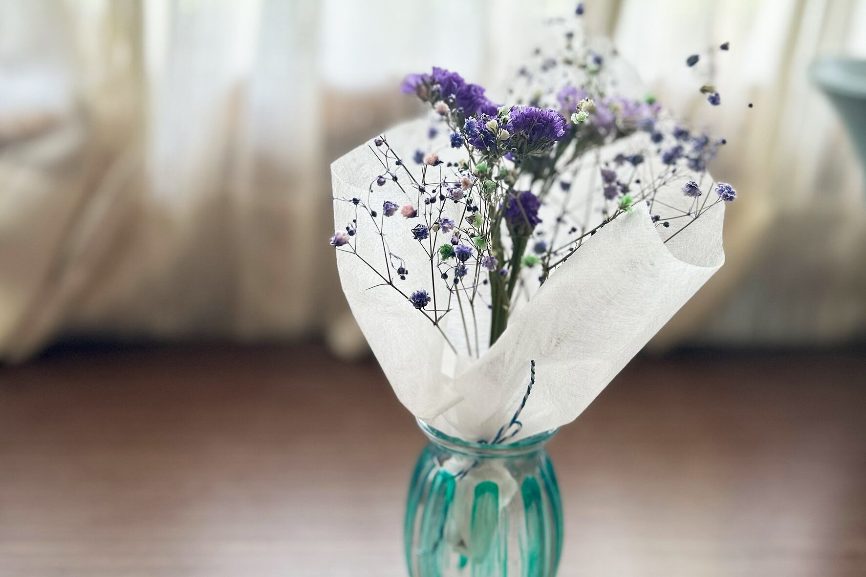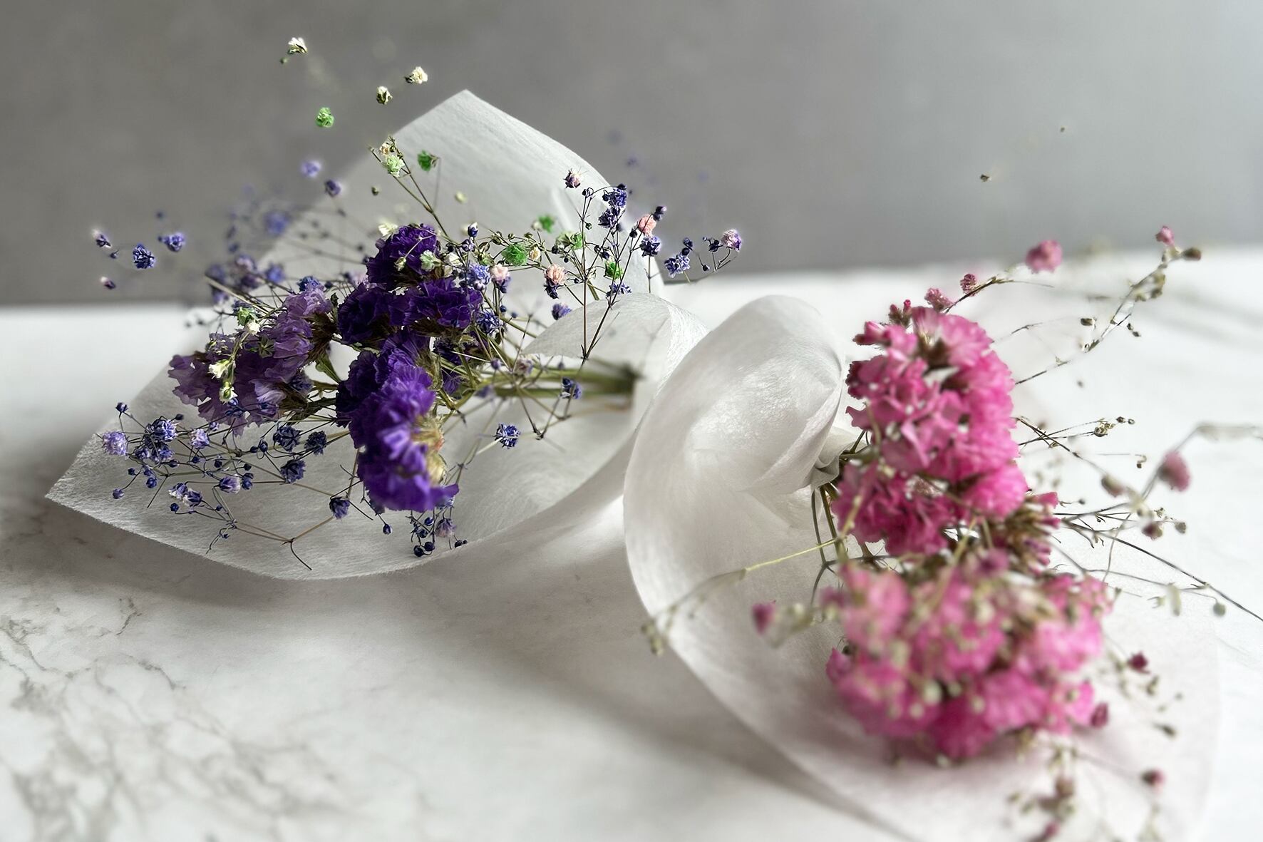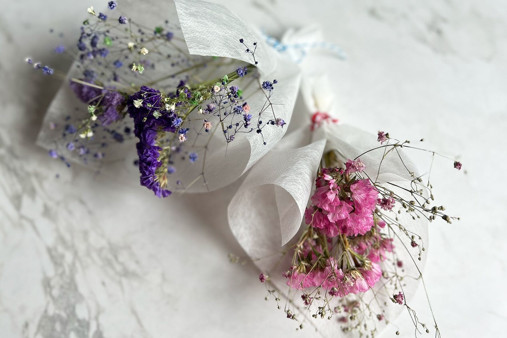 主に使用する花材はかすみ草とスターチス