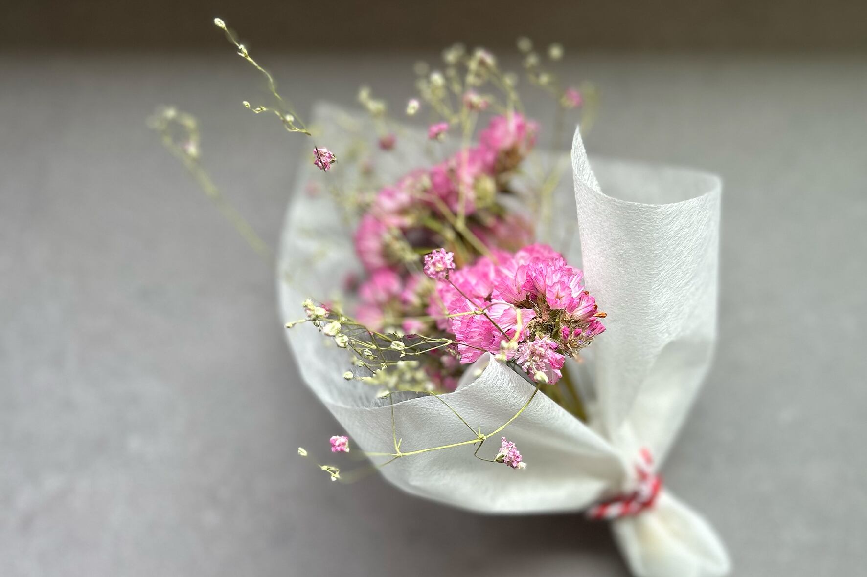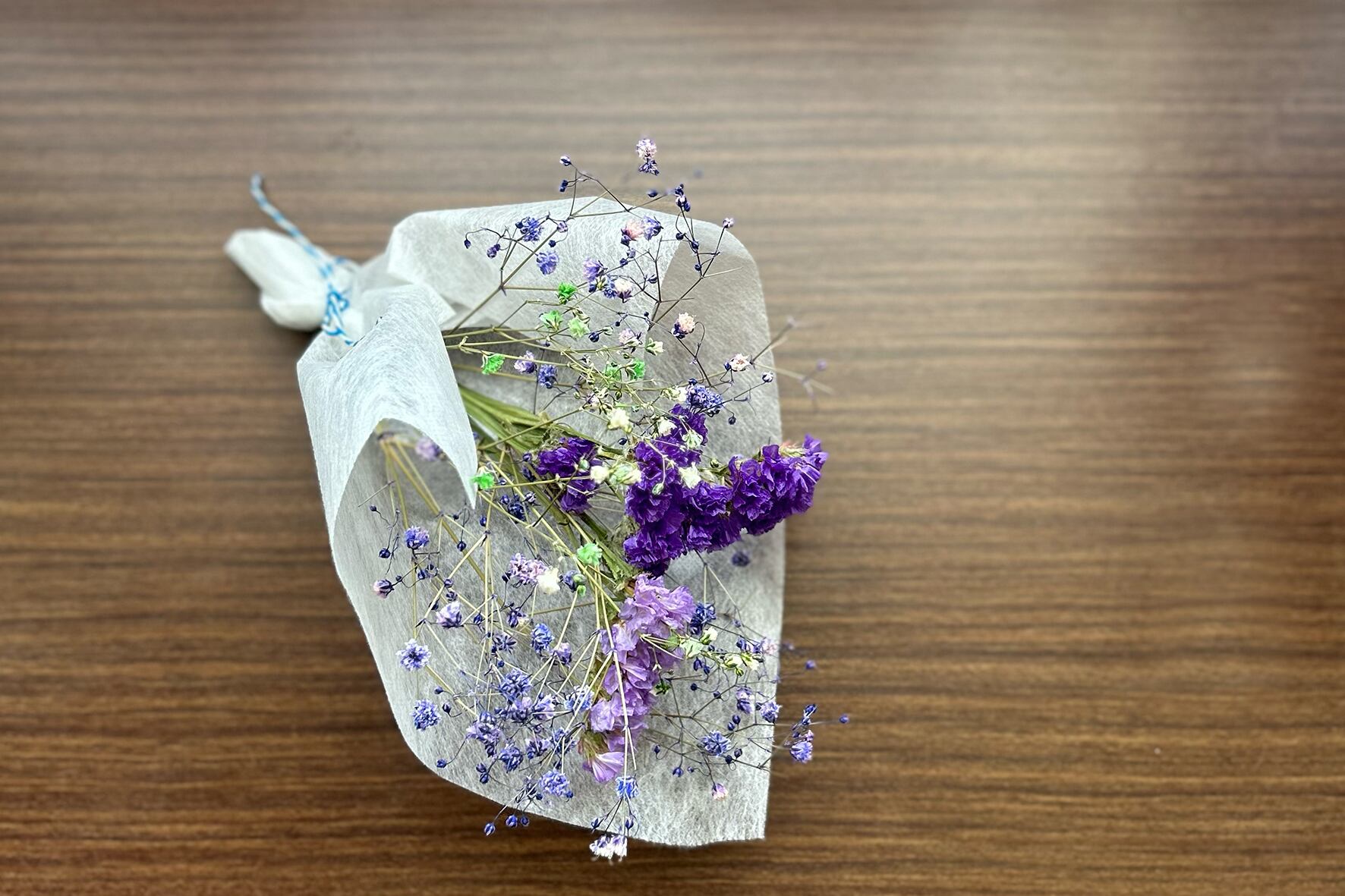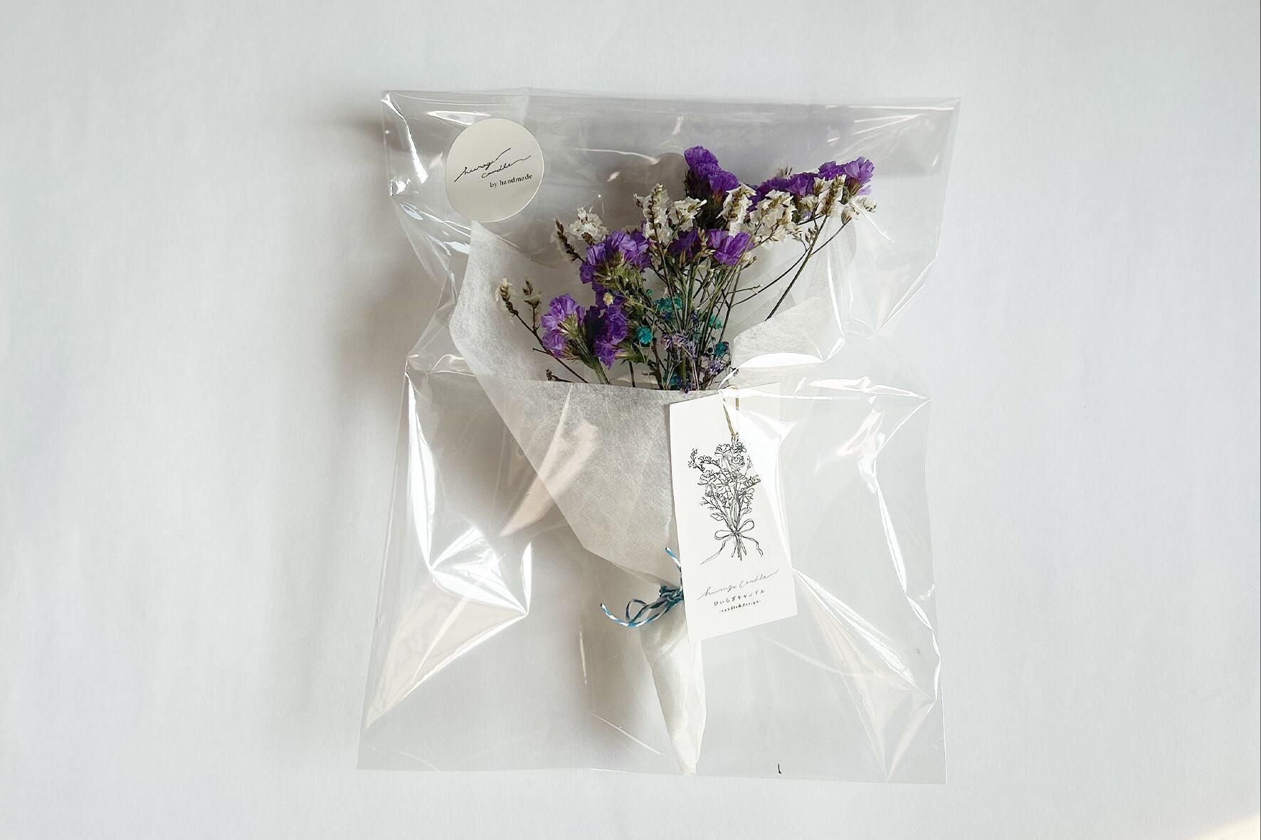 美しいドライフラワーがぎゅっと詰まった、小さなブーケです