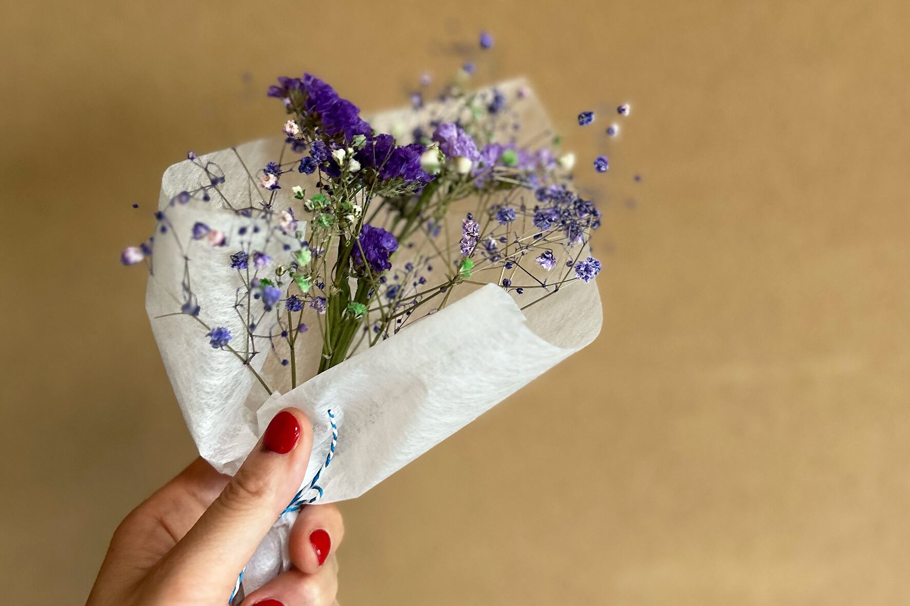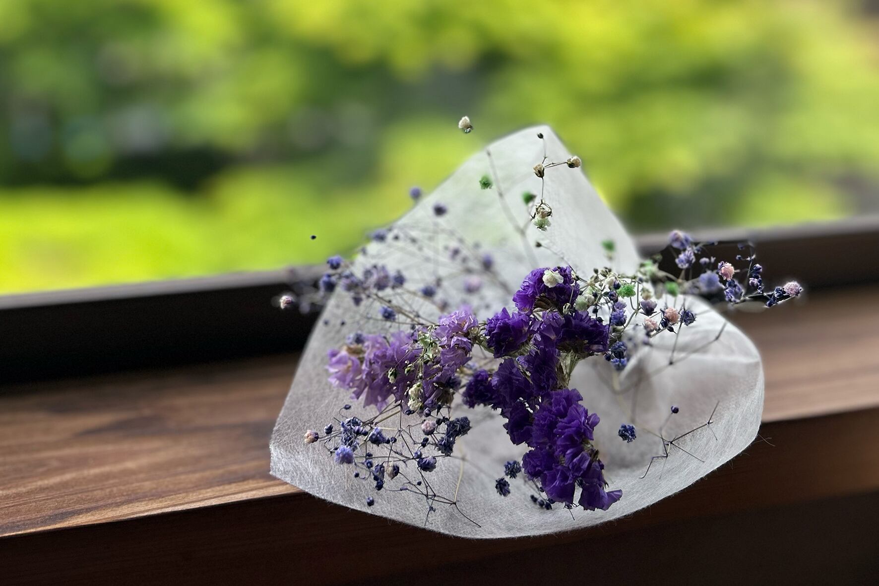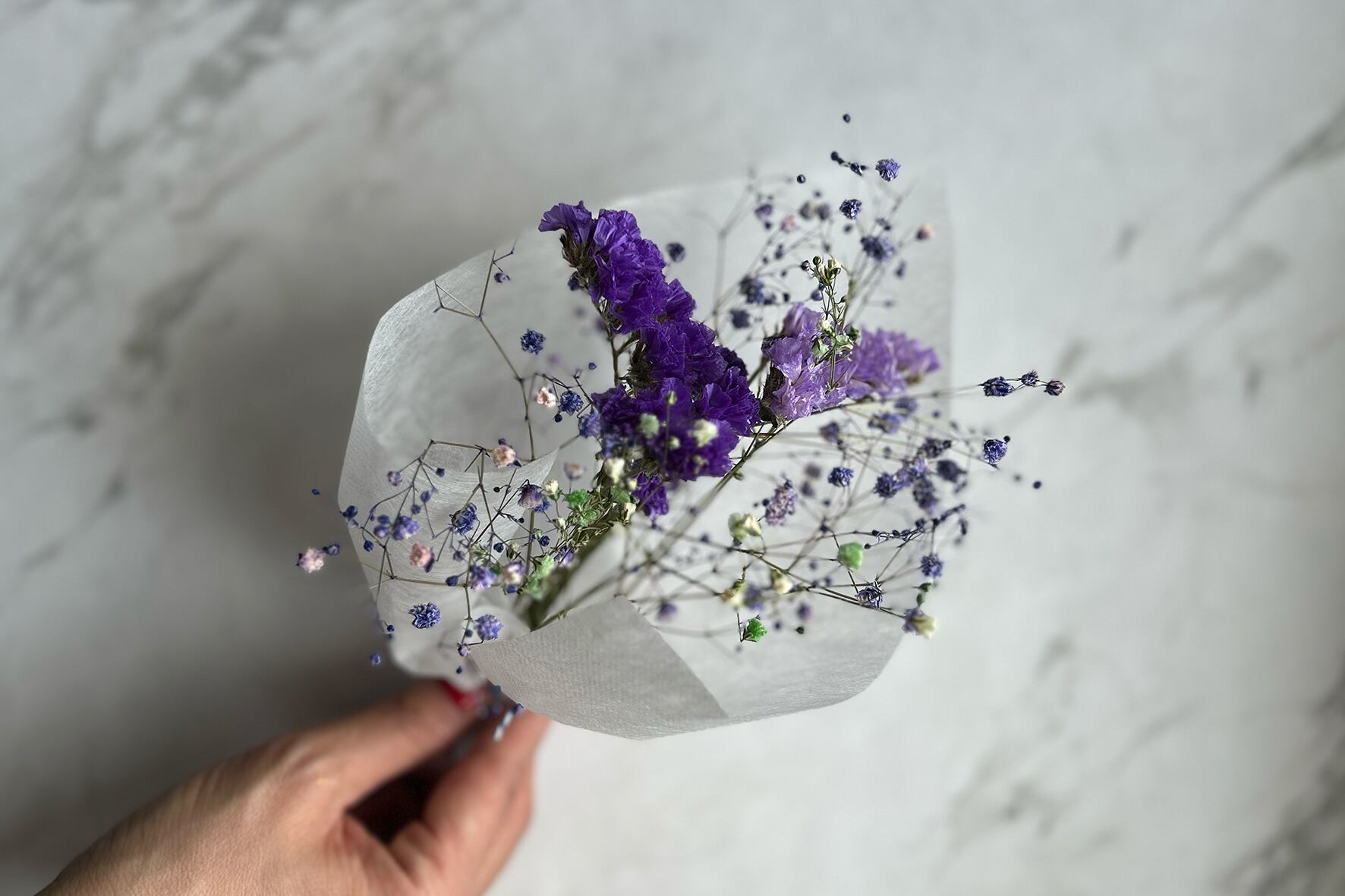 美しいドライフラワーがぎゅっと詰まった、小さなブーケです